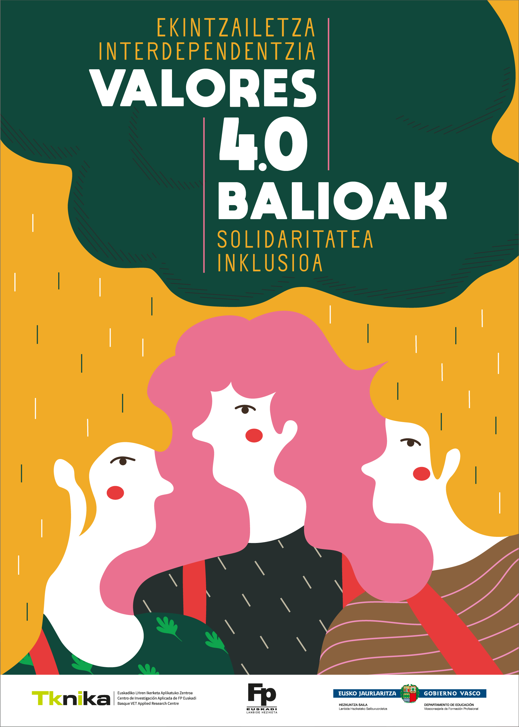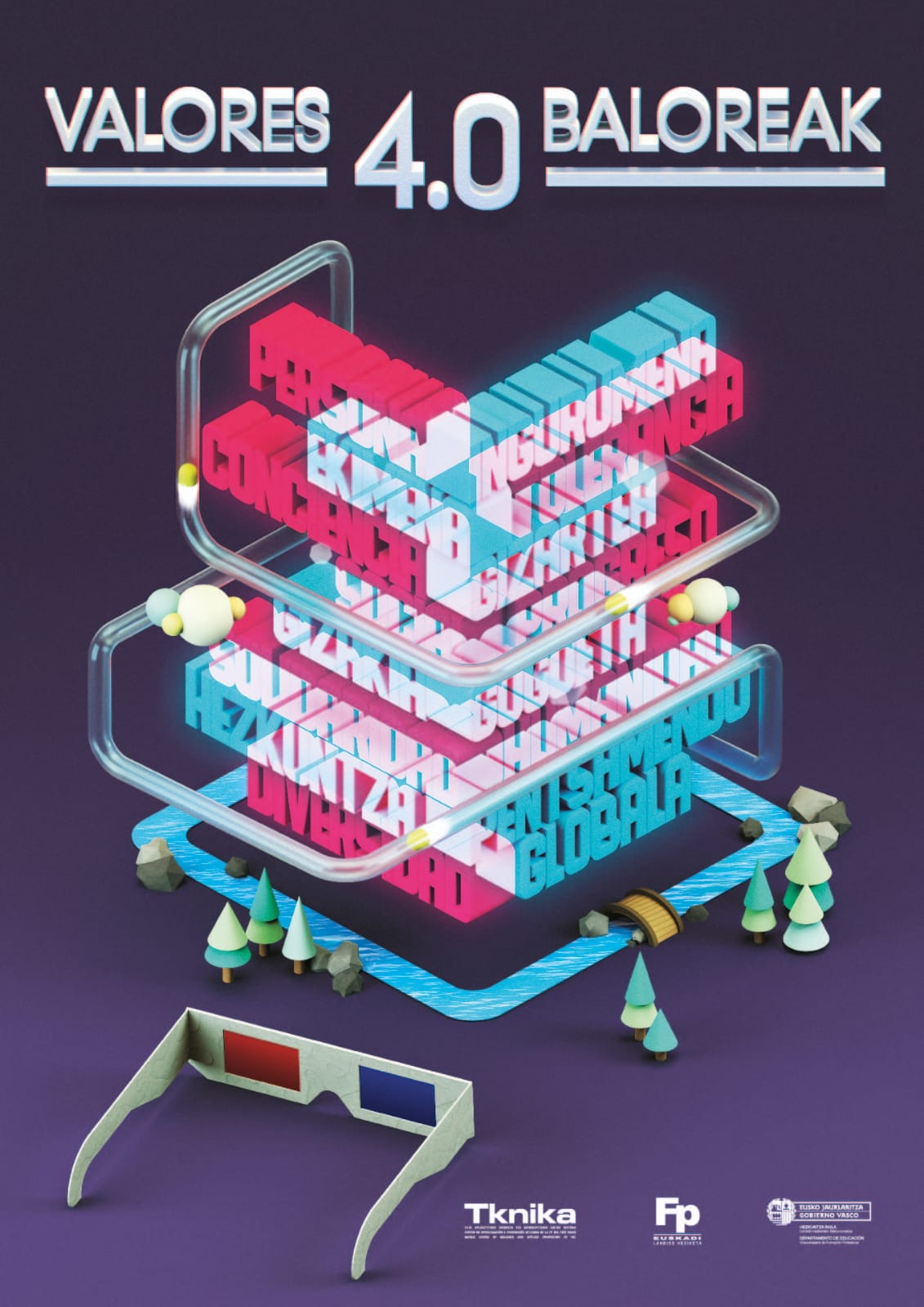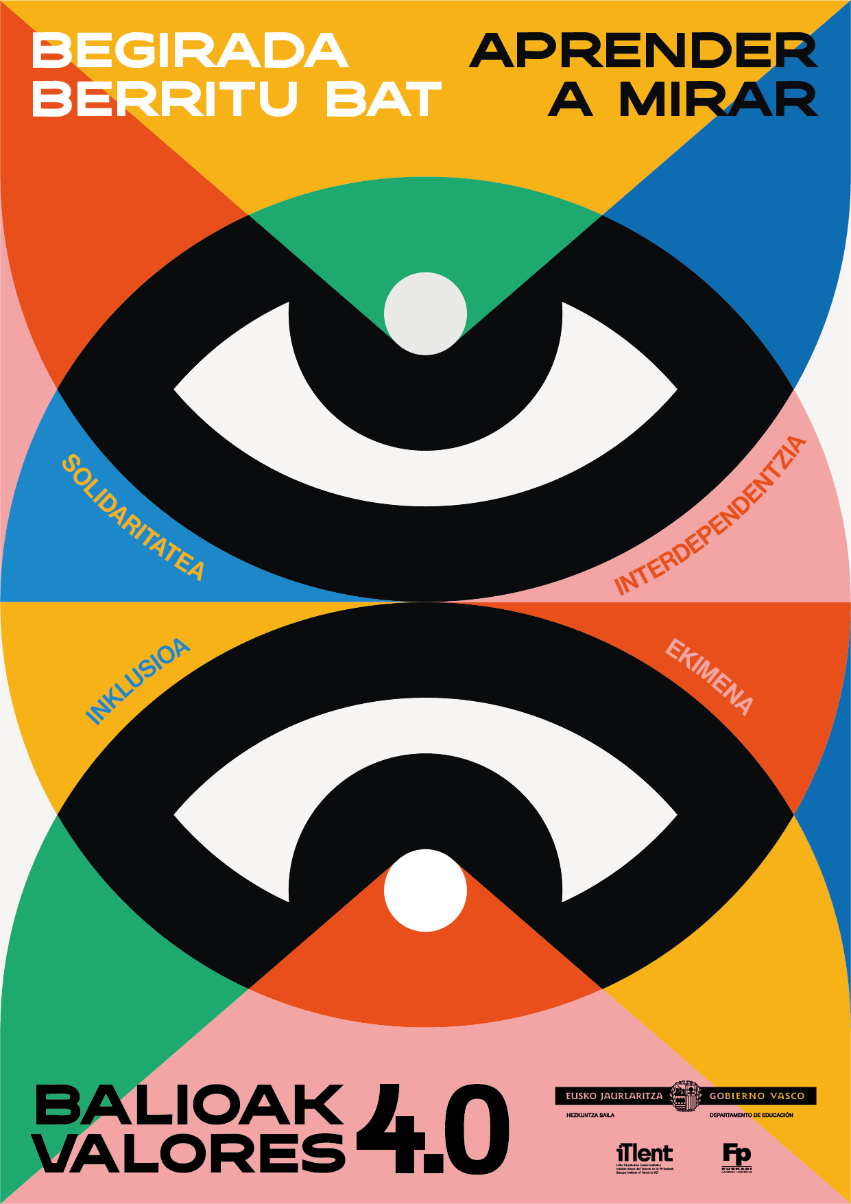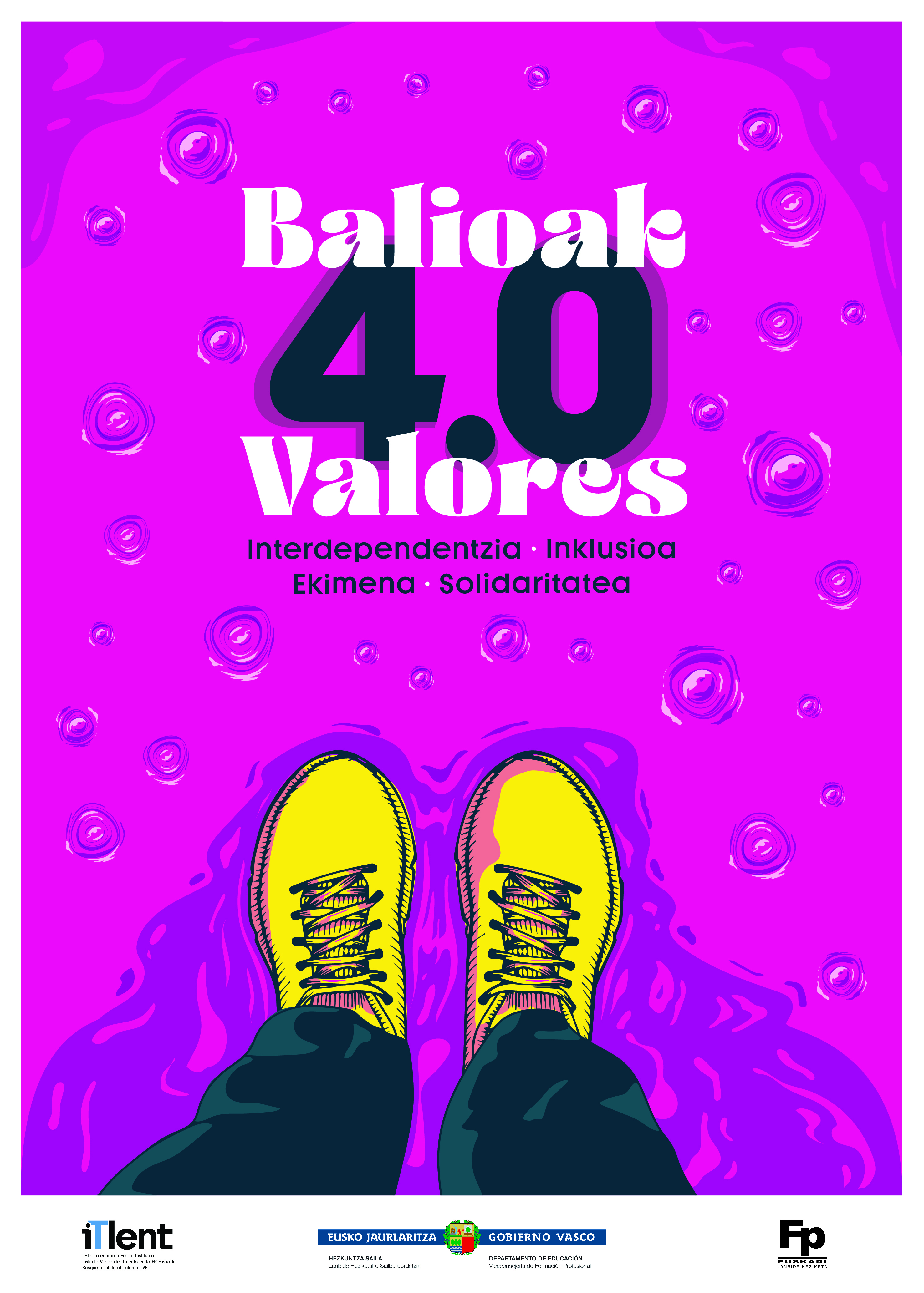 Urteetan zehar, Balioak 4.0 proiektua irudien bidez ere komunikatu da. Posterrek funtsezko ideia batzuk jasotzen dituzte, balioetan oinarritutako prestakuntza ikaskuntza-prozesuaren zeharkako elementu gisa ulertzera bultzatzen gaituztenak.